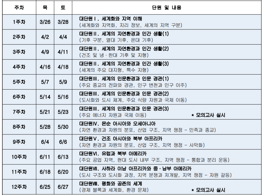 [수강 대상] 2027학년도 수능 세계지리 1등급 및 내신 대비 개념 완성을 목표로 하는 학생