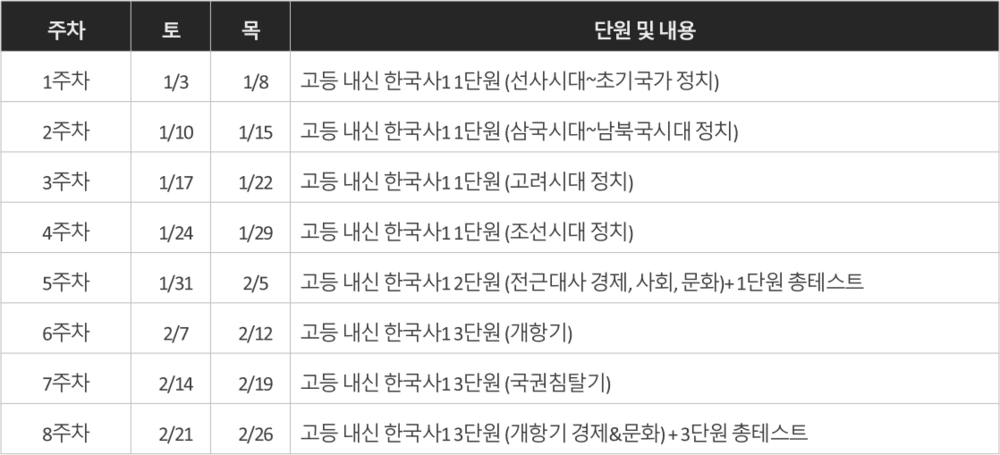 [수강 대상] ‘한국사 1’, 1학기 범위 심화 개념을 원하는 학생 (예비 고1)