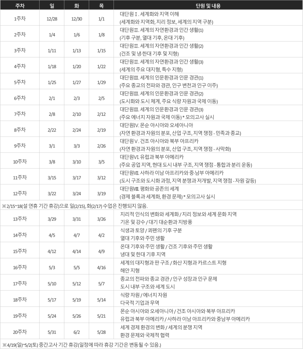 [수강 대상] 2027학년도 수능 세계지리 1등급 및 내신 대비 개념 완성을 목표로 하는 학생